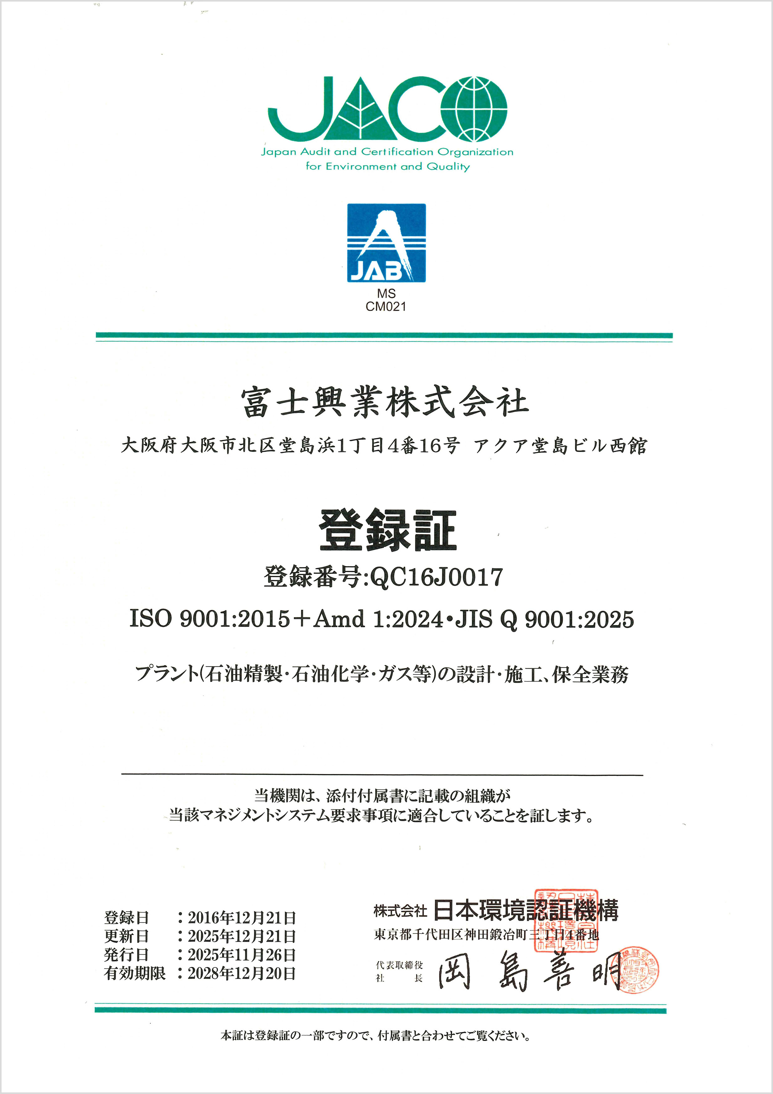 - ISO9001:2015+Amd 1:2024・JISQ9001:2025